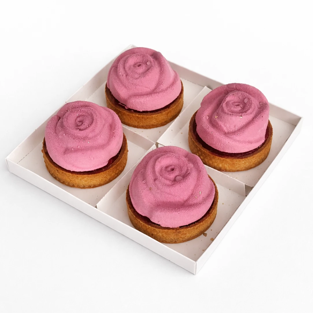 Elegantný set štyroch tartaletiek je perfektný ako sladké potešenie ku káve, dezert na oslavu alebo originálny darček pre blízkych.